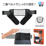 強力な腰サポートベルト!二重ベルトでズレずに固定。二重ベルトの締め付けで、激しい動きや長時間の作業でもしっかりホールドします。また、装着時のズレを防ぐ滑り止め加工が内側に施されています。さらに、伸縮性が高く、男女問わず幅広い体型に対応。腰を酷使する職業、スポーツ選手、介護・看護業務、デスクワークなど、あらゆるシーンで活躍します。イラスト入り説明で簡単に着用でき、プレゼントとしても喜ばれる一品です。