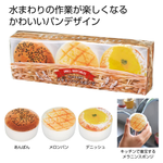 リアルなパンデザインのメラミンスポンジ3個組。バスケットに入ったようなパッケージも魅力。実用的で人気のメラミンスポンジは、キッチンまわりの掃除に重宝します。3個セットになっているため、使い分けが可能で便利です。またバスケット風のパッケージは、置いておくだけでお部屋が和やかな雰囲気になります。生活雑貨やイベント景品としておすすめです。