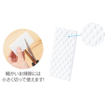 水だけで汚れが落とせる薄いシート状のメラミンスポンジ。薄いメラミンが小さめのシートになったお掃除アイテムです。指にフィットしやすいので、コップや細かな隙間を磨くのに最適です。かわいいデザインのパッケージには名刺ポケットが付いており、ご挨拶まわりやイベントでの配布にぴったりなアイテムです。