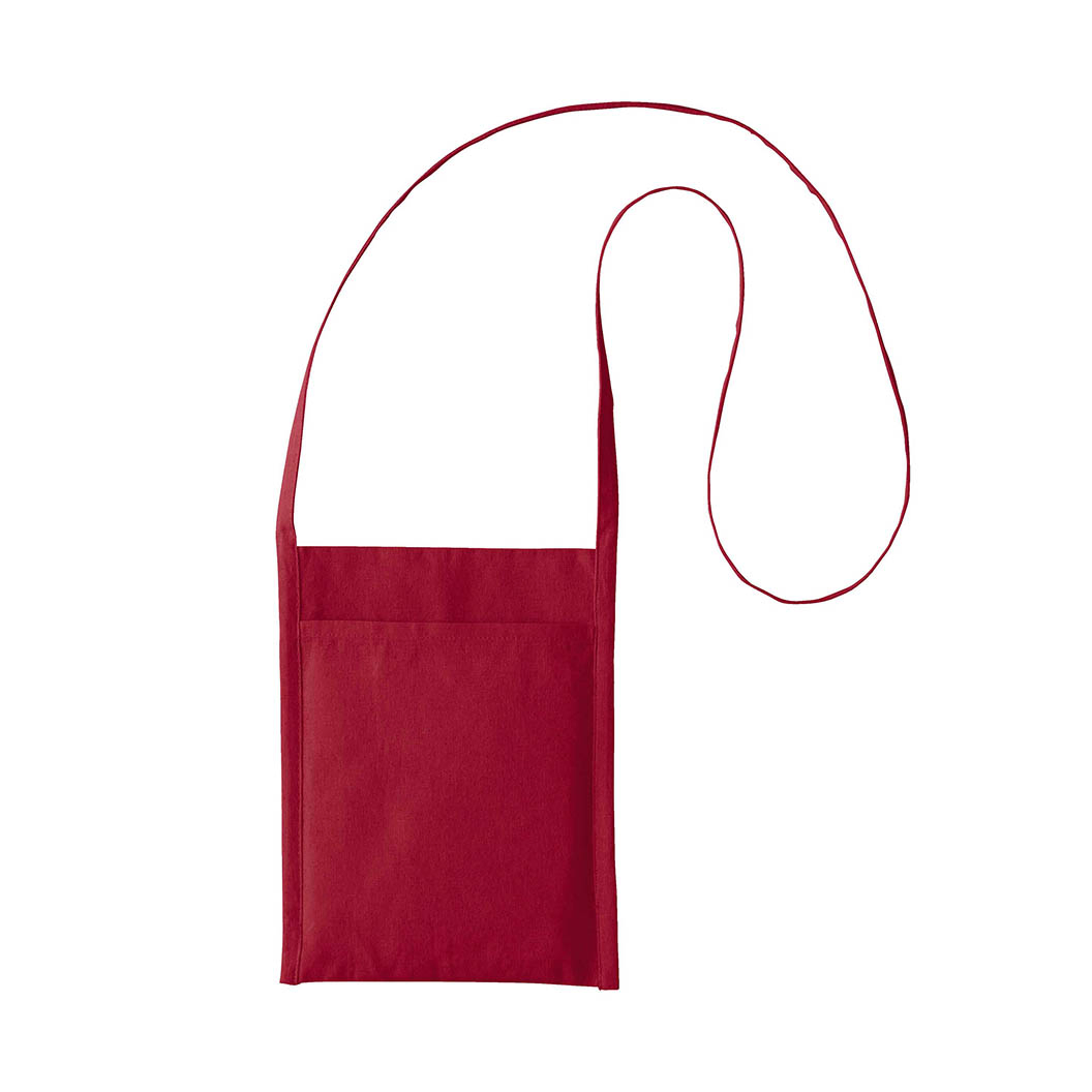 厚手コットンミニサコッシュは表面のオープンポケットと裏面のかぶせポケットが付いたミニサイズサコッシュです。