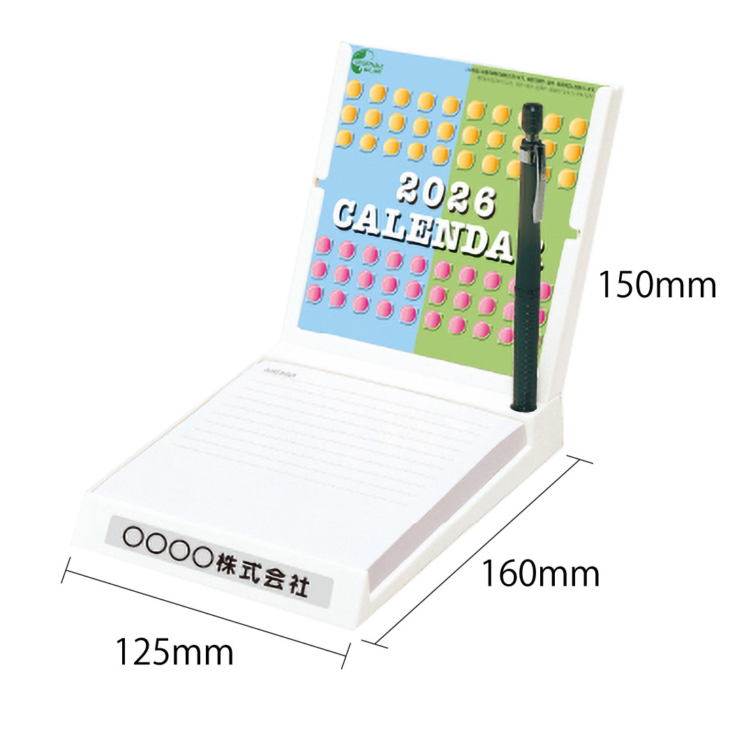 卓上・メモ付カレンダー NB1075は、メモ用紙とペン立ての機能が付いた卓上カレンダーです。オフィスでもご家庭でも、電話やPCの近くに置いておくと便利です。 「外出中です」「社内におります」カードが付いていて、簡単に組み立てられます。