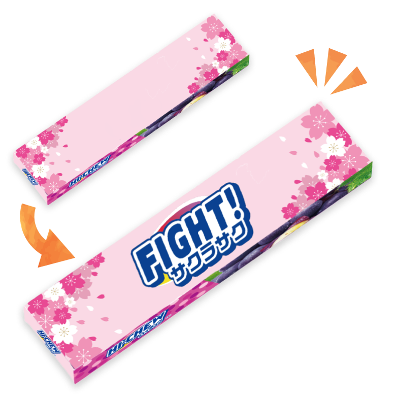 お問い合わせフォームはこちらフルーツのジューシーな味わいと、噛み応えのある独自食感で、手軽に日常のワクワク感を創出するソフトキャンディです。 ※2025年11月3日(月)までに配布していたテンプレートは旧サイズのためご利用をお控えください ※新サイズのテンプレートは上記"テンプレートをダウンロード"からダウンロードいただけます ※デザインやサイズ調整はお客様のお手元でご入稿前にご調整ください