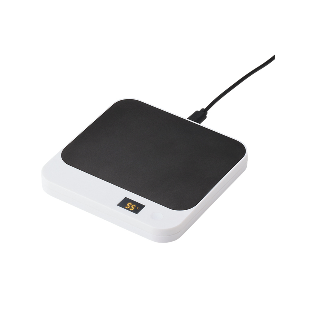 お問い合わせフォームはこちら飲み物を保温できるカップウォーマーです。 USB電源に繋いで使用することで、オフィスやご自宅での作業時や休憩中、飲み物がすぐに冷めてしまうのを防いでくれます。 55℃・65℃・75℃の3段階で温度調節が可能で、お好みの温度でご使用いただけます。 また約8時間経過した場合、自動で電源がOFFになる安全機能付きで安心です。 付属のType-Cケーブルは取り外し可能な仕様のためかさばりにくく、持ち運びや収納の際にも便利です。 ウォーマー部分には名入れ範囲広く取れ、さらにディスプレイ横にもワンポイントの印刷が可能です。 デスクワークの多い企業のグッズや、インテリアメーカーのノベルティなど幅広くご提案いただけます。