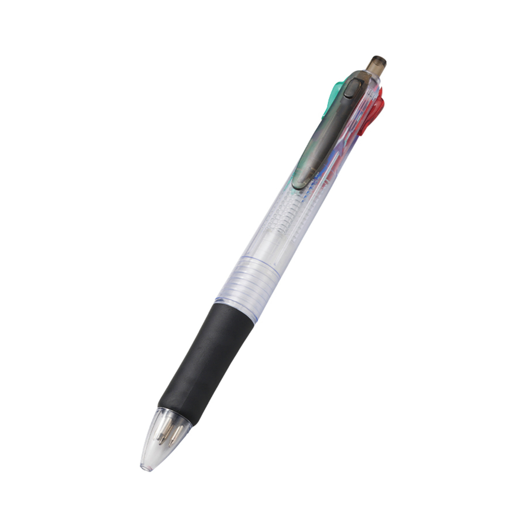 お問い合わせフォームはこちらシンプルなクリアボディの4色ボールペンです。 ペン先のカラーは使用頻度の高いブラック・レッド・ブルーの3色に加え、アクセントになるグリーンを足した4色です。 天面ノックを押すと簡単に芯がしまえる仕組みで使い勝手もばっちりです。 多色ペンの中でもリーズナブルなため、おくばり案件などにもおすすめです。 本体にフルカラー印刷が可能なため、企業ロゴや学校ロゴをいれれば説明会やオープンキャンパスなどのノベルティとしてご提案いただけます。