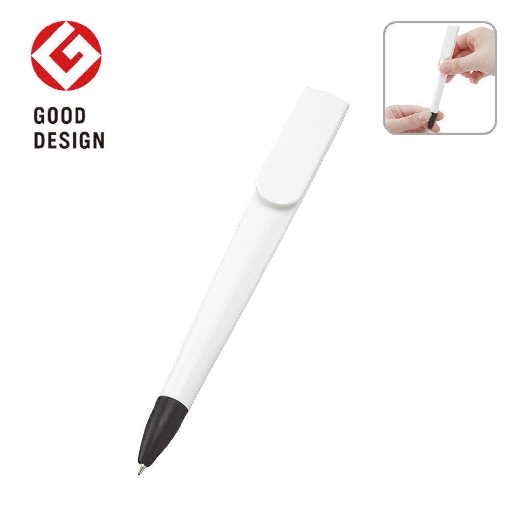 ラペルボールペン TF-0121は、グッドデザイン賞を受賞したフラットなボディのボールペンです。ボディ部分には再生ABSを使用しています。