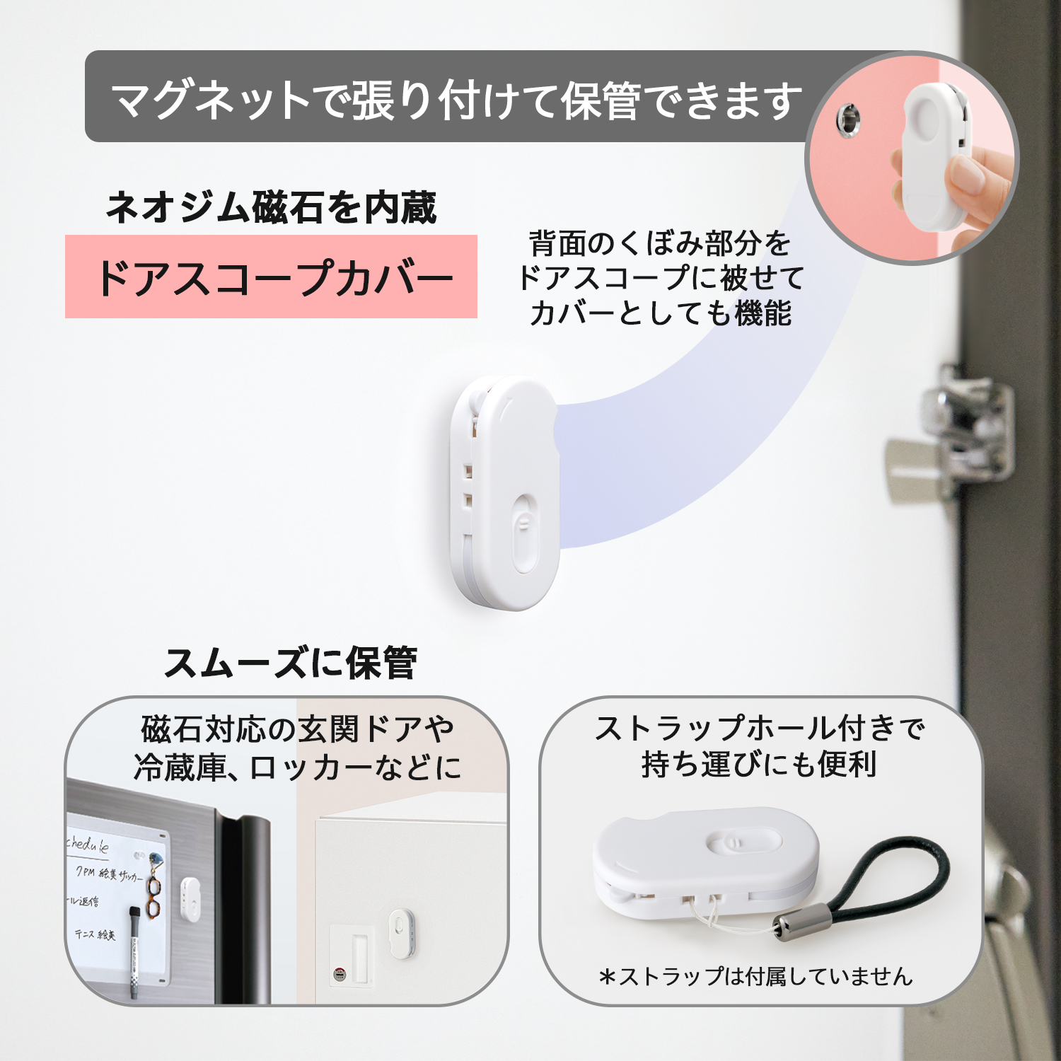 ★届いた荷物は、開けて、はがして、ささっと片付け。玄関で開梱から片付けまでスムーズに完了! ★開梱カッター:錆びないセラミック刃で長持ち。 ★リムーバー:爪を傷つけずに、宛名ラベルやテープの端を剥がすことができます。 ★マグネット内蔵:ネオジム磁石内蔵で玄関ドアや冷蔵庫に貼り付けておくことができます。 ★ドアスコープカバー:裏面にくぼみがあるので、玄関のドアスコープカバーに被せることができます。 ★ストラップホール:持ち運びに便利。 ★替刃式:ドライバー不要で刃を交換することができます。