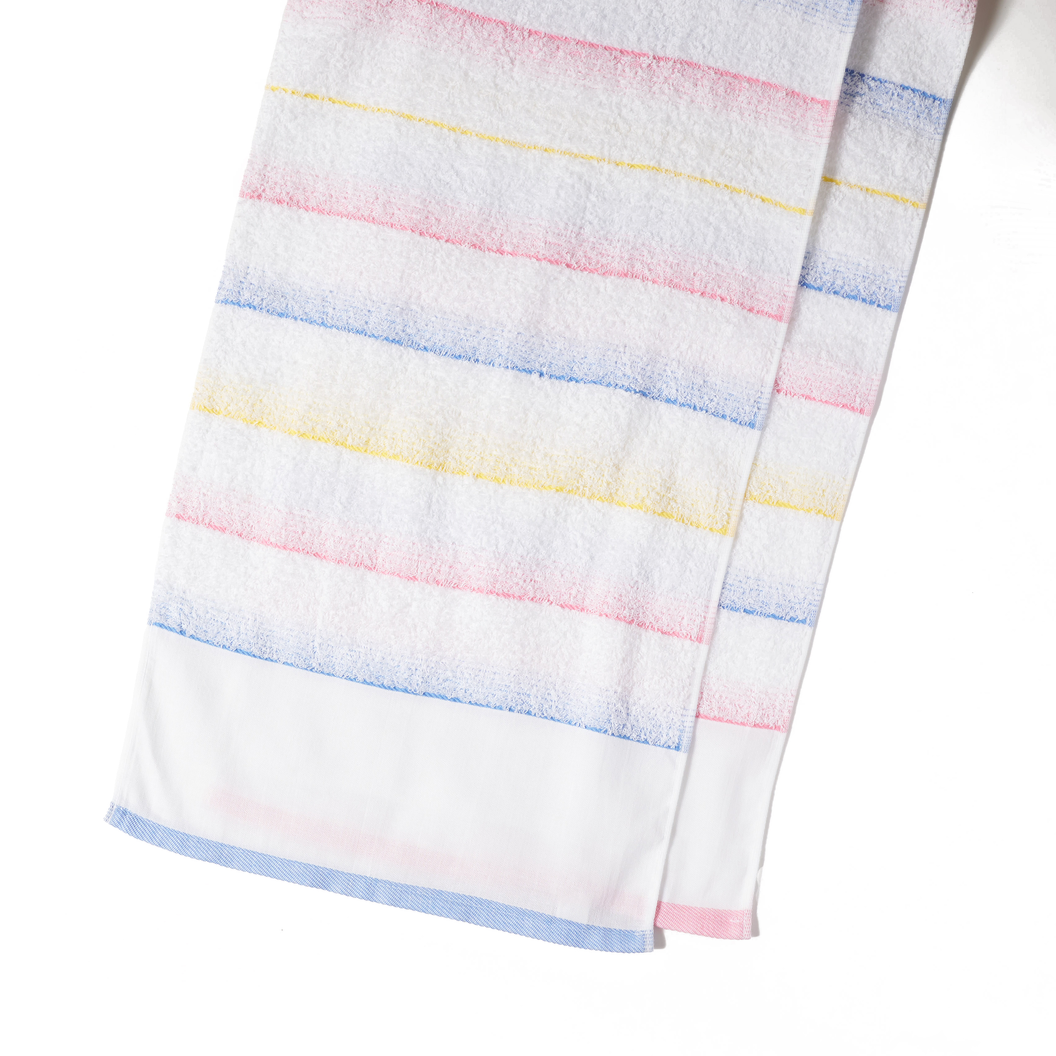 お問い合わせフォームはこちらモダンライン柄国産タオル 2色セット 260匁は、本体サイズが約34×93cmの厚手のカラータオルです。ブルー、ピンクの2色展開です。