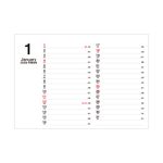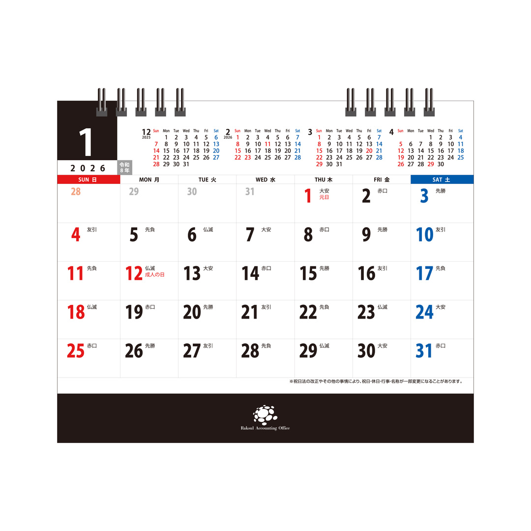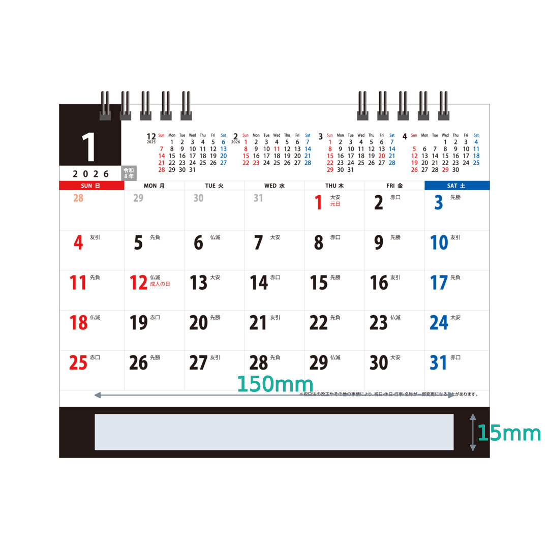 3色スケジュールプラン SA-105は、すっきり見やすい文字、広めのメモ欄で実用性の高いデザインの卓上カレンダーです。12月の裏面は翌年の4月までの年表が付きます。