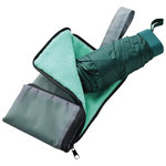外側生地は撥水加工で雨をはじき、 中側は吸水生地で傘の水滴を吸い取るケースです。 ボタンでサイズ調整ができ、小さめ折傘にも対応。