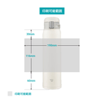 | 注意事項 | 保温効力とは、室温20℃±2℃において製品に熱湯を取扱説明書に記載の位置まで満たし、縦置きにした状態で湯温が95℃±1℃の時から6時間放置した場合におけるその湯の温度です。保冷効力とは、室温20℃±2℃において製品に冷水を取扱説明書に記載の位置まで満たし、縦置きにした状態で水の温度が4℃±1℃の時から6時間放置した場合におけるその水の温度です。 |
