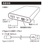 | 商品に関する注意事項 | 最大出力2.1A、バッテリー容量10000mAh、本体重量約178g |