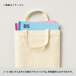 お問い合わせフォームはこちら中身が透けず、印刷乗りも綺麗なことで大人気のライトキャンバスシリーズのフラットバッグです。 Sサイズ~LLサイズまでご用意しており、Sサイズは学校などで使うノート(B5)が入るサイズ感です。 すっきりした形なので、鞄に入れても邪魔にならず、サブバッグにもピッタリです。 単色からフルカラー印刷まで対応可能ですので様々な案件に使用できます。