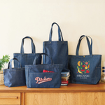 シックなインディゴカラーにベージュのステッチをほどこしたファッショナブルなデニムシリーズです。 13オンスでタフなところもポイント! 定番の舟形デザインで使いやすい人気のデニムトートバッグです。 S・Mの2サイズ展開で、Sサイズはランチトートとして、またはちょっとしたお出かけなどにもちょうど良いサイズ感です。 使い勝手のよいミニトートは、ノベルティとしても大人気のアイテムです。 単色印刷はもちろん、フルカラー印刷も可能なためオリジナルロゴやキャラクターを入れた物販品としてもご提案いただけます。