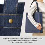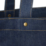 シックなインディゴカラーにベージュのステッチをほどこしたファッショナブルなデニムシリーズです。 13オンスでタフなところもポイント! トレンド感のあるスクエア型デニムトートバッグです。 ハンドル部分についたアンティークゴールドのスタッズがポイントです。 A4が入るサイズ感かつ、肩掛けもできるのでデイリーユースにもぴったりです。 また外ステッチをほどこしており、角ばったフォルムを引き立ててくれます。 単色印刷はもちろん、フルカラー印刷も可能なため オリジナルロゴやキャラクターを入れた物販品やノベルティ、購入特典としてもご提案いただけます。