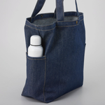 お問い合わせフォームはこちらシックなインディゴカラーにベージュのステッチをほどこしたファッショナブルなデニムシリーズです。 13オンスでタフなところもポイント! サイドポケット付きのデニムトートバッグです。 サイドポケットには、ペットボトルや折りたたみ傘などを入れて便利にお使いいただけます。 さらに口元にはホックが付いており、デザイン性・機能性とも高いポイントです。 マチもついているので、お買い物バッグとしてもぴったりです。 単色印刷はもちろん、フルカラー印刷も可能なためオリジナルロゴやキャラクターを入れた物販品やノベルティ、購入特典としてもご提案いただけます。