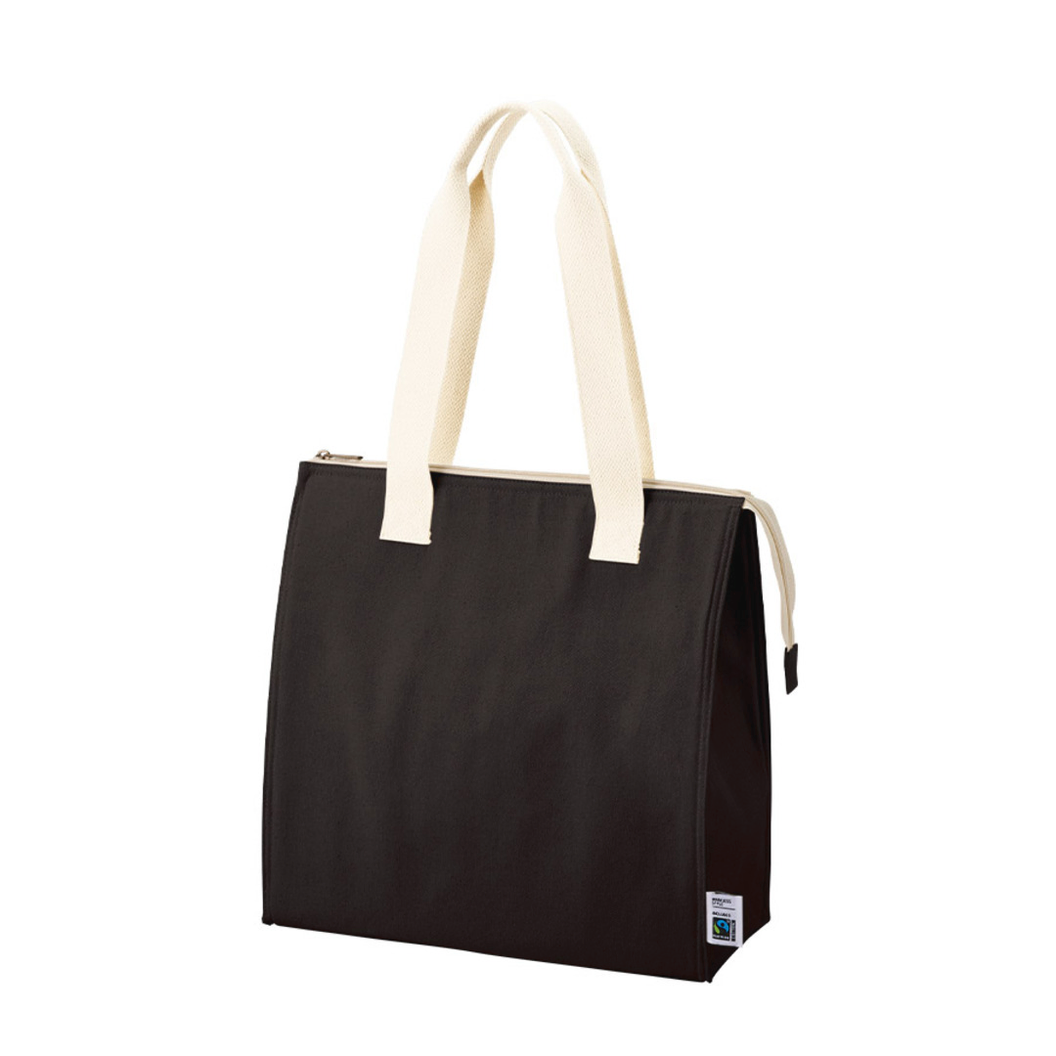 お問い合わせフォームはこちらフェアトレードコットンを使用した保冷トートバッグです。 シンプルで使い勝手の良いスクエア型に、太めのテープハンドルがアクセントになります。 S・Mの2サイズ展開で、Mサイズは肩掛けができしっかりとした容量もあるため 食料品のお買い物用バッグとしてぴったりです。 また単色印刷はもちろん、フルカラー印刷も可能なため オリジナルノベルティやグッズのほか、 SDGs関連のキャンペーン販促品やフェアトレード関連フードの案件など 素材の特性を生かした案件などにご提案いただけます。 ▼フェアトレードとは? フェアトレードとは発展途上国の原料や製品を適正な価格で購入することで、そのような国の人々の生活改善や自立を支援する活動です。 当製品に使用されているコットンもフェアトレード認証生産者から基準に従って調達された認証コットンです。 ▼国際フェアトレード認証コットンラベルとは? 国際フェアトレード認証ラベルは、その原料が生産されてから、輸出入、加工、製造工程を経て「国際フェアトレード認証製品」として完成品となるまでの各工程で、国際フェアトレードラベル機構(Fairtrade International)が定めた国際フェアトレード基準が守られていることを証明するラベルです。 つまり、この商品はフェアトレードだという証明書や目印のような役割をしています。