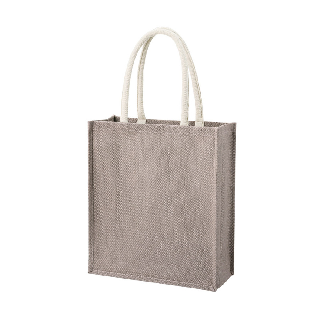 大人気ジュートシリーズのA4サイズトートバッグです。 用途やお好みでお選びいただけるタテ型・ヨコ型の2タイプでご用意いたしました。 A4サイズ書類や500mlペットボトルなど荷物をしっかりといれることができるサイズ感です。 ハンドルは肩掛けができる便利な長さで、お出かけやお買い物バッグとしてもぴったりです。 単色印刷はもちろん、フルカラー印刷も可能なためアパレルショップのノベルティや購入特典、食料品店の販促品など<br> 天然素材を生かして幅広くご提案していただけます