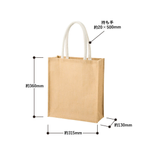 お問い合わせフォームはこちら大人気ジュートシリーズのA4サイズトートバッグです。 用途やお好みでお選びいただけるタテ型・ヨコ型の2タイプでご用意いたしました。 A4サイズ書類や500mlペットボトルなど荷物をしっかりといれることができるサイズ感です。 ハンドルは肩掛けができる便利な長さで、お出かけやお買い物バッグとしてもぴったりです。 単色印刷はもちろん、フルカラー印刷も可能なためアパレルショップのノベルティや購入特典、食料品店の販促品など<br> 天然素材を生かして幅広くご提案していただけます
