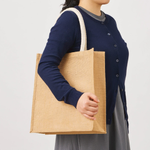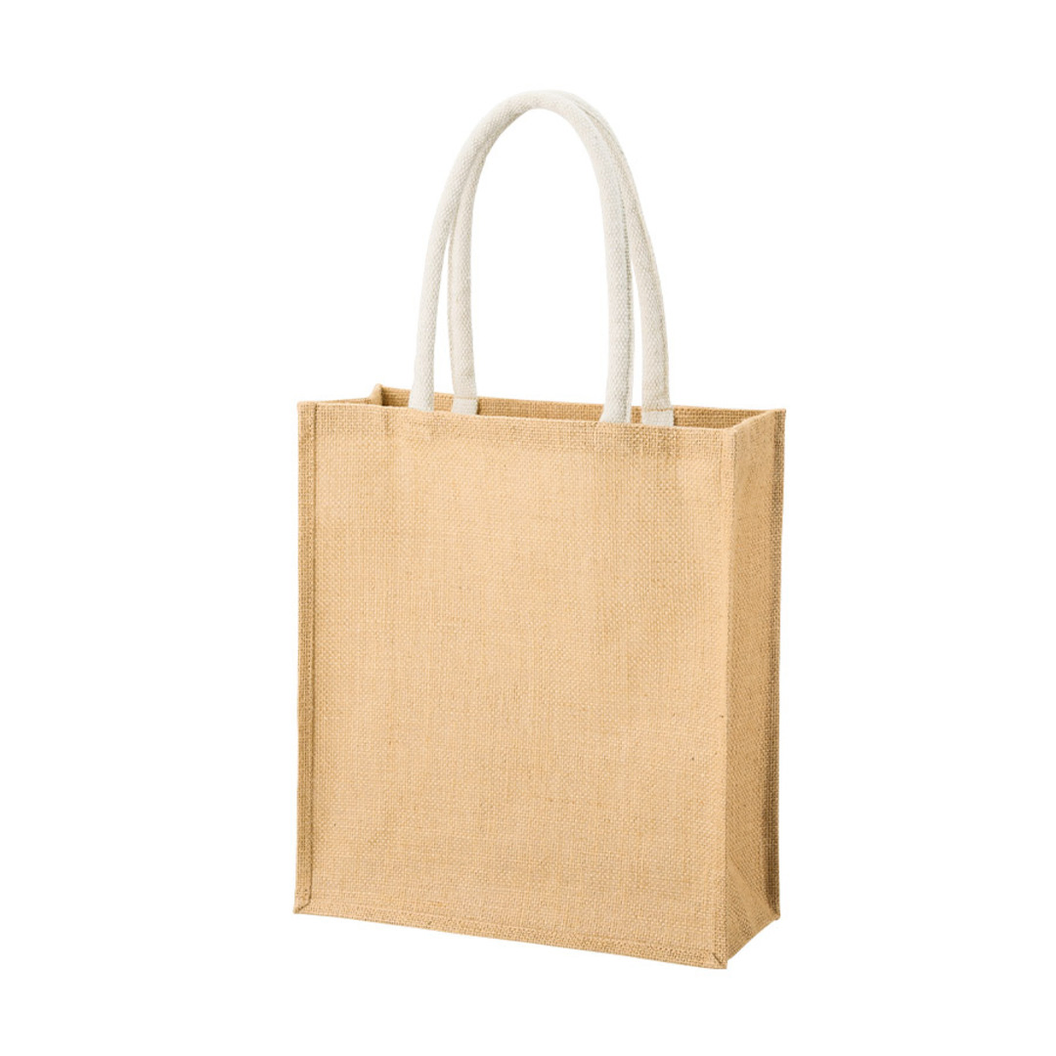 大人気ジュートシリーズのA4サイズトートバッグです。 用途やお好みでお選びいただけるタテ型・ヨコ型の2タイプでご用意いたしました。 A4サイズ書類や500mlペットボトルなど荷物をしっかりといれることができるサイズ感です。 ハンドルは肩掛けができる便利な長さで、お出かけやお買い物バッグとしてもぴったりです。 単色印刷はもちろん、フルカラー印刷も可能なためアパレルショップのノベルティや購入特典、食料品店の販促品など<br> 天然素材を生かして幅広くご提案していただけます