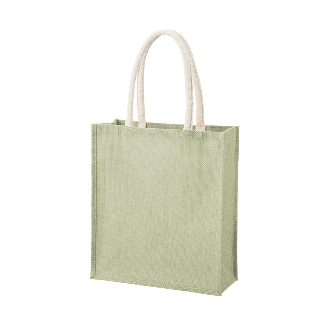 大人気ジュートシリーズのA4サイズトートバッグです。 用途やお好みでお選びいただけるタテ型・ヨコ型の2タイプでご用意いたしました。 A4サイズ書類や500mlペットボトルなど荷物をしっかりといれることができるサイズ感です。 ハンドルは肩掛けができる便利な長さで、お出かけやお買い物バッグとしてもぴったりです。 単色印刷はもちろん、フルカラー印刷も可能なためアパレルショップのノベルティや購入特典、食料品店の販促品など<br> 天然素材を生かして幅広くご提案していただけます