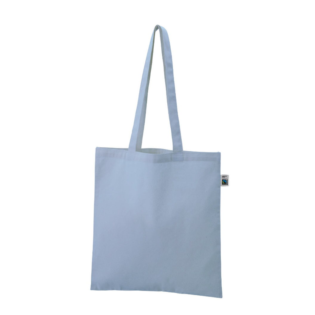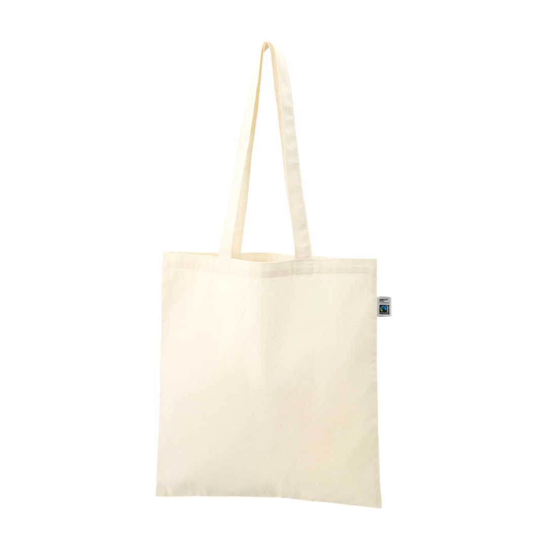 お問い合わせフォームはこちら薄手で使いやすい5オンスのフェアトレードコットンを使用したフラットタイプのトートバッグです。 肩掛け可能な長めのハンドルに、カタログなど資料入れにぴったりなサイズ感でサブバッグとして幅広くご利用いただけます。 また同シリーズ内で安価なため、ご提案がしやすいのもポイントです。 単色印刷はもちろん、フルカラー印刷も可能なためオリジナルノベルティやグッズのほか、 SDGs関連のキャンペーン販促品やフェアトレード関連フードの案件など素材の特性を生かした案件などにご提案いただけます。 ▼フェアトレードとは? フェアトレードとは発展途上国の原料や製品を適正な価格で購入することで、そのような国の人々の生活改善や自立を支援する活動です。 当製品に使用されているコットンもフェアトレード認証生産者から基準に従って調達された認証コットンです。 ▼国際フェアトレード認証コットンラベルとは? 国際フェアトレード認証ラベルは、その原料が生産されてから、輸出入、加工、製造工程を経て「国際フェアトレード認証製品」として完成品となるまでの各工程で、国際フェアトレードラベル機構(Fairtrade International)が定めた国際フェアトレード基準が守られていることを証明するラベルです。 つまり、この商品はフェアトレードだという証明書や目印のような役割をしています。