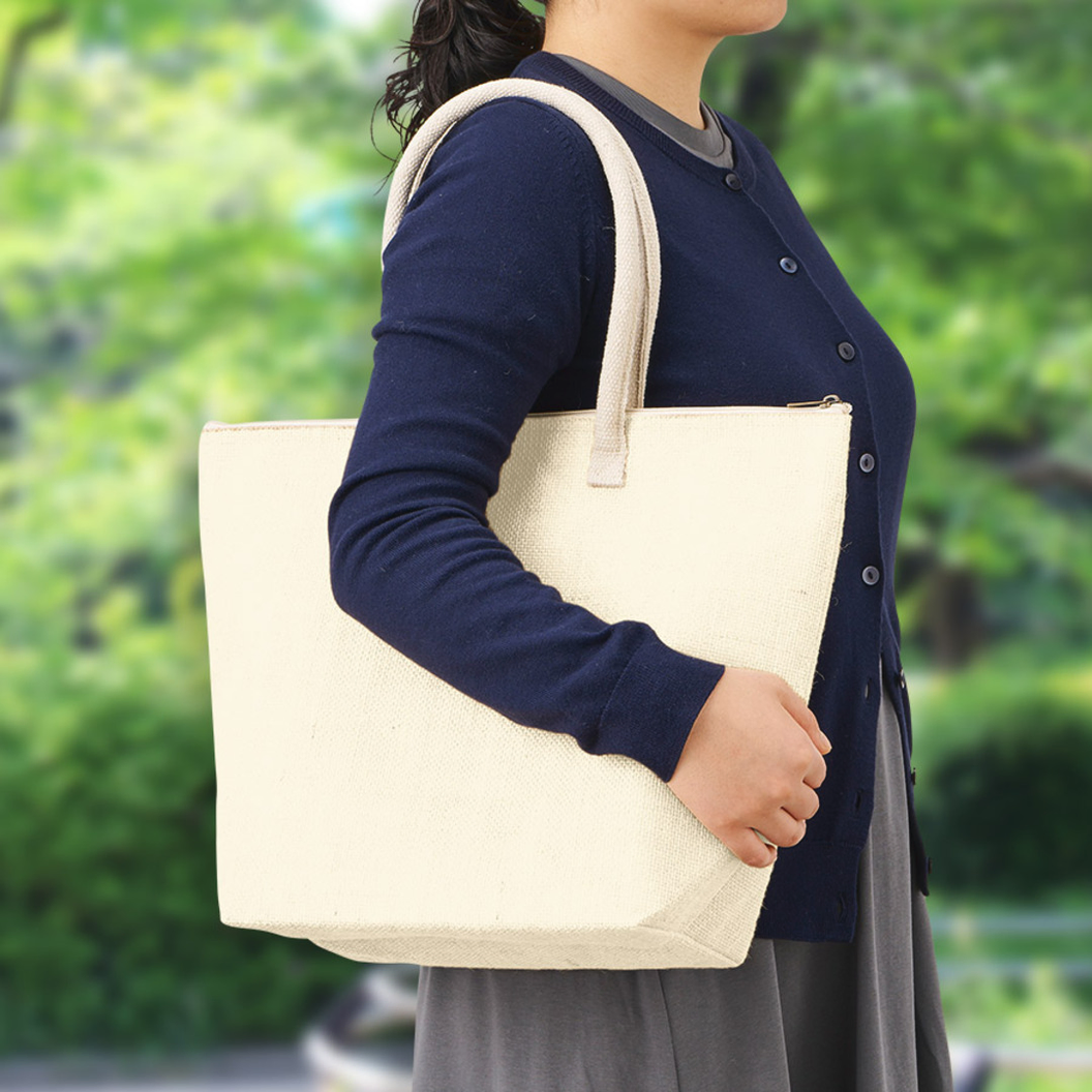 お問い合わせフォームはこちら大人気ジュートシリーズの舟形保冷バッグです。 パイプハンドルタイプなので、肩掛けしても負担なく持つことができます。 食料品などしっかりと入るサイズ感のため、お買い物バッグやエコバッグとしてもおすすめです。 デイリー使いはもちろん、レジャーやアウトドアまで幅広くお使いいただけます。 また口元はファスナー付きなのも便利なポイントです。 単色印刷はもちろん、フルカラー印刷も可能なため 食料品店の販促品や、お土産品店などのオリジナル保冷ショッパーとしてもご提案いただけます。
