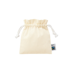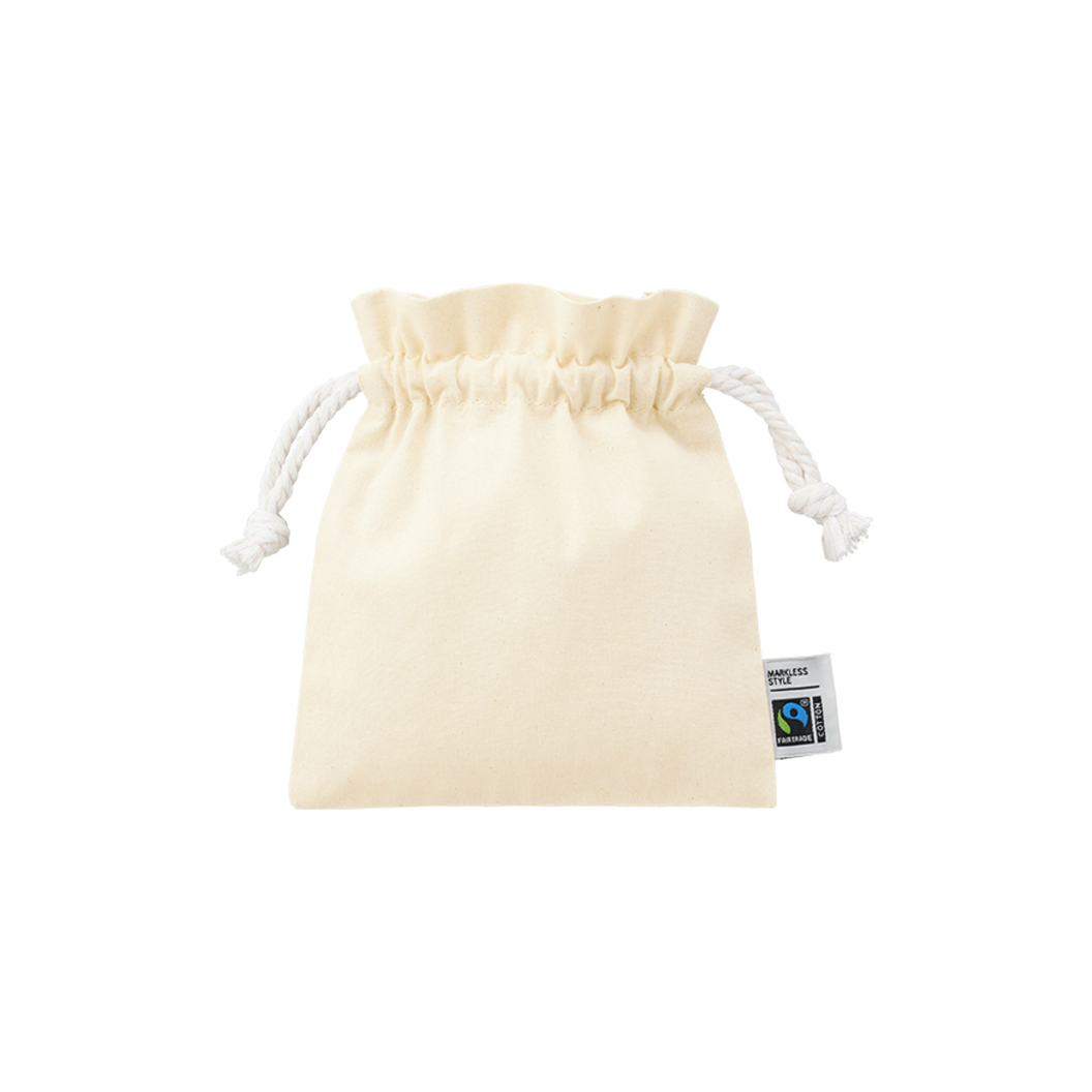 お問い合わせフォームはこちらフェアトレードコットンを使用した巾着です。 人気のフリル型は、シンプルながら口元の立ち上がりが華やかな印象で、ねじったロープタイプの紐もポイントです。 生地、紐、全ての素材にフェアトレード認証のオーガニックコットンを使用しています。 S・Mの2サイズ展開で、Sサイズは小物入れとして持ち歩きにちょうどいいサイズ感です。 また単色印刷はもちろん、フルカラー印刷も可能なためギフト包装用の巾着やオリジナルノベルティのほか、 SDGs関連のキャンペーン販促品やフェアトレード関連フードの案件など素材の特性を生かした案件などにご提案いただけます。 ▼フェアトレードとは? フェアトレードとは発展途上国の原料や製品を適正な価格で購入することで、そのような国の人々の生活改善や自立を支援する活動です。 当製品に使用されているコットンもフェアトレード認証生産者から基準に従って調達された認証コットンです。 ▼国際フェアトレード認証コットンラベルとは? 国際フェアトレード認証ラベルは、その原料が生産されてから、輸出入、加工、製造工程を経て「国際フェアトレード認証製品」として完成品となるまでの各工程で、国際フェアトレードラベル機構(Fairtrade International)が定めた国際フェアトレード基準が守られていることを証明するラベルです。 つまり、この商品はフェアトレードだという証明書や目印のような役割をしています。