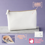 定番型のポーチも洗練された印象に。清楚なホワイトと高級感のある生地で差がつくハイクオリティなシリーズ。