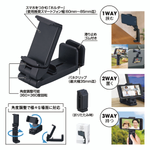 挟む、置く、持つの3WAYなので、常に快適&ベストなスマホ環境を作れる、便利なマルチスタンド。