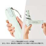 遮光率100%、UVカット率100%、UPF評価50+、撥水加工生地使用! 約160gと軽量かつスリムボディで、クリップ形状ハンドルが特徴の遮光折りたたみ傘です。 クリップ部分をバッグなどに掛けて持ち運ぶことができ、またハンドルの内側には滑り止めもついているため、テーブルなどにひっかけることもできます。 さらに石突の面積を大きくしたことで自立も可能です。 巾着型の傘袋はストッパー付きなので紛失の心配もありません。 クリップ部分は全面フルカラー印刷が可能なため販促効果もばっちりです。 傘本体パネル、傘袋、幅広のベルトにもそれぞれ印刷が可能で、オリジナリティの高いアイテムをご提案いただけます。