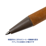 廃棄される珈琲殻を再利用した環境配慮型ボールペン。樹脂部分に20%のコーヒー殻繊維を配合し、プラスチックの使用量を削減。ペン軸にはクラフト紙を採用し、ナチュラルな風合いが魅力です。エコをテーマにしたイベント・展示会のノベルティに最適。実用性とメッセージ性を兼ね備えた一本です。