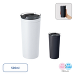 お問い合わせフォームはこちら蓋の一部がクリアデザインのシンプルなプラサーモタンブラーです。 蓋の一部がクリアになっていることで、飲み物を飲む際に中身が見えて飲みやすいのがポイントです。 中の層を厚くし、より多くの断熱材(ウレタン)を入れられるよう設計することで保温保冷性能もアップし実用性も抜群です。 350ml・500mlの2サイズ展開で、350mlはオフィスでの使用にちょうど良いサイズ感です。 本体側面に単色印刷が可能なので、ブランドロゴや企業名を入れればオリジナルアイテムとして幅広くご提案いただけます。