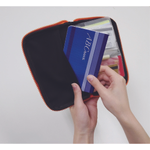 クッション性に優れたEVA素材のマルチポーチ。カード4枚・印鑑2本・通帳2冊が収納できます。お薬手帳も入るサイズ感です。