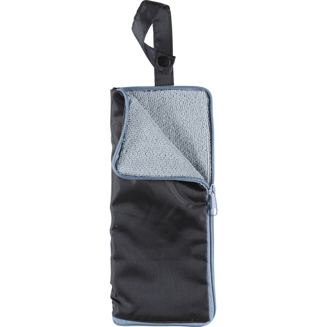 濡れたまま収納できる!ペットボトルホルダーやタオルとしても使えるマルチ傘カバー。カバンに掛けられるフック付き。