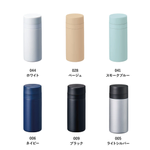 お問い合わせフォームはこちらトレンドのくすみカラー、ベージュとスモークブルーを追加投入! 軽量で持ち運びやすい、スタイリッシュなサーモボトルです。 本体のステンレスを薄くしたことで真空層が広がり、 内側はメッキ加工を施すことにより熱を逃しにくい仕様になっています。 さらに仕様を工夫したことで保冷保温性能が高まり、実用性もばっちりです。 またステンレスを薄くしたことで軽量化され、おでかけやオフィスなど日常使いにも便利なアイテムです。 さまざまな案件にご提案しやすく、名入れもきれいに映えるベーシックなカラー展開です。 側面はもちろん天面にも印刷ができるため、オリジナリティの高いグッズを製作していただけます。
