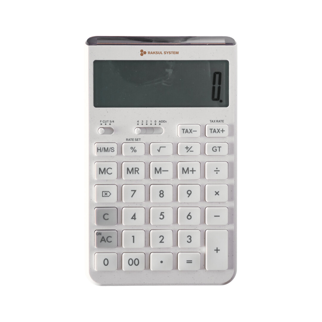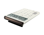 お問い合わせフォームはこちら①様々なシーンに調和する、環境にも配慮した電卓 ②エコ素材/開閉式スタンド/天面ソーラーパネル ③12桁/税計算/エコマーク認定/グリーン購入法適合