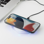 人気のクリアワイヤレス充電器に出力10Wバージョンが登場しました。 一部外側にアクリルを使用したことで、光が反射しやすく 充電中には青いランプがきれいに点灯するため、置いているだけで存在感があります。 カラーはベーシックでお使いいただきやすいブラック・ホワイトの2色展開です。 印刷面はフラットな設計になっているため、広範囲に単色またはフルカラーで印刷が可能です。 自宅やオフィスなどでインテリア感覚で気軽に楽しむことができるためイベントの記念品やお店のオリジナルノベルティとしても喜ばれるアイテムです。