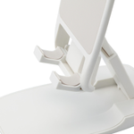 お問い合わせフォームはこちら広い面で端末を支える、高い安定性のスマートフォン・タブレット用スタンドです。端末と接する台座やアーム部分、底面の設計にこだわり、安定性を高めています。端末を設置したまま操作してもグラつきにくい仕様です。アーム部分はお好みに合わせて、角度と長さを自由に調節可能。約200gと軽量で、折りたたむと約1.8cmの薄さになるのでスタイリッシュなデザインです。持ち運びや収納も便利です。