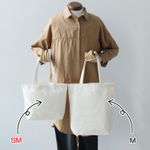 B5サイズがゆったり入る大きさのマチありトートバッグです。ペットボトルや水筒も収まるので、ランチバッグやサブバッグとして活用いただけます。持ち手が長いので女性なら肩掛けも可能です。