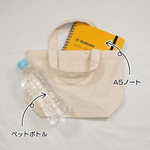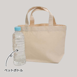 マチありミニトート。お弁当箱とペットボトルが入るサイズなので、ランチバッグとして最適です。財布とスマホを入れて近所へのお出かけに、ペットのオリジナルバッグやお散歩バッグにも。ショップロゴなどを印刷してノベルティバッグとして人気の商品です。