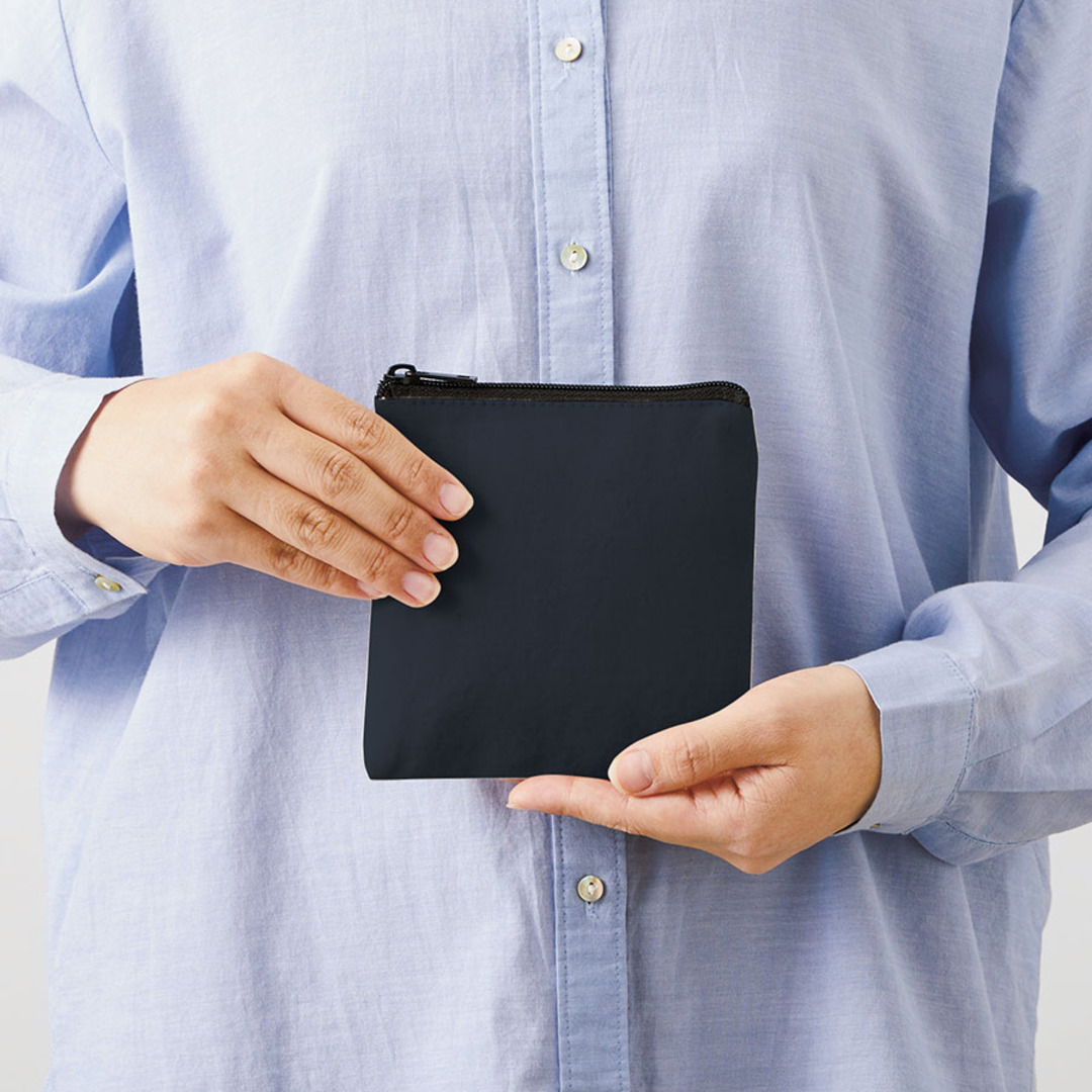 お問い合わせフォームはこちらライトキャンバスフラットポーチ(SS)は、コットンを使用した、キャンバス生地の正方形のマチなしポーチです。 サイズは縦130mm×横130mmで、スマホやモバイルバッテリー、エコバッグなどを収納できます。 本体色は、ナチュラル・ナイトブラック・ネイビーの3色展開です。