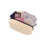 キャンバスファスナーポーチ(M)は、コットンを使用した、キャンバス生地のマチありポーチです。 本体サイズは縦120mm×横180mm×マチ75mmで、スマホやモバイルバッテリー、エコバッグなどを収納できます。 バッグに収まりやすい丸みを帯びたシルエットが特徴です。 本体色は、ナチュラル・ミッドナイトブルー・ナイトブラックの3色展開です。