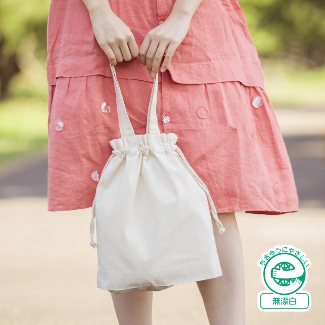 厚手コットンガゼット巾着トート(M)は5オンスのコットン生地が使用されたマチ付き巾着型トートバッグです。