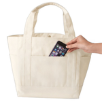 厚手キャンバスポケットマルチトート(M)は3つのマルチポケットと口元のマグネットホックが付いた14オンスのコットン生地トートバッグです。