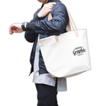 お問い合わせフォームはこちら厚手キャンバスレザーハンドルトート(M)は本革ハンドル付きで14オンスコットン生地が使用されたMサイズのトートバッグです。